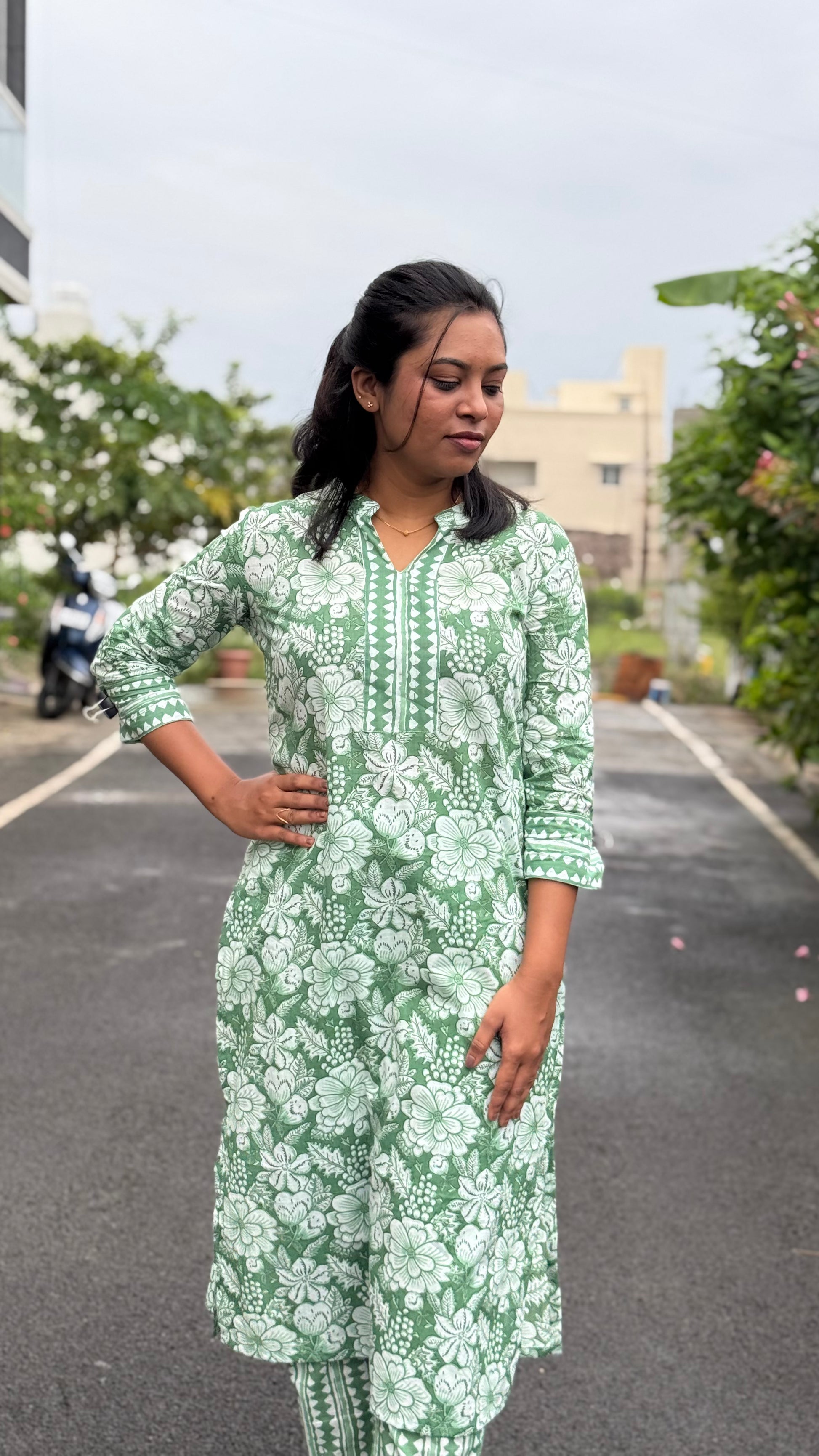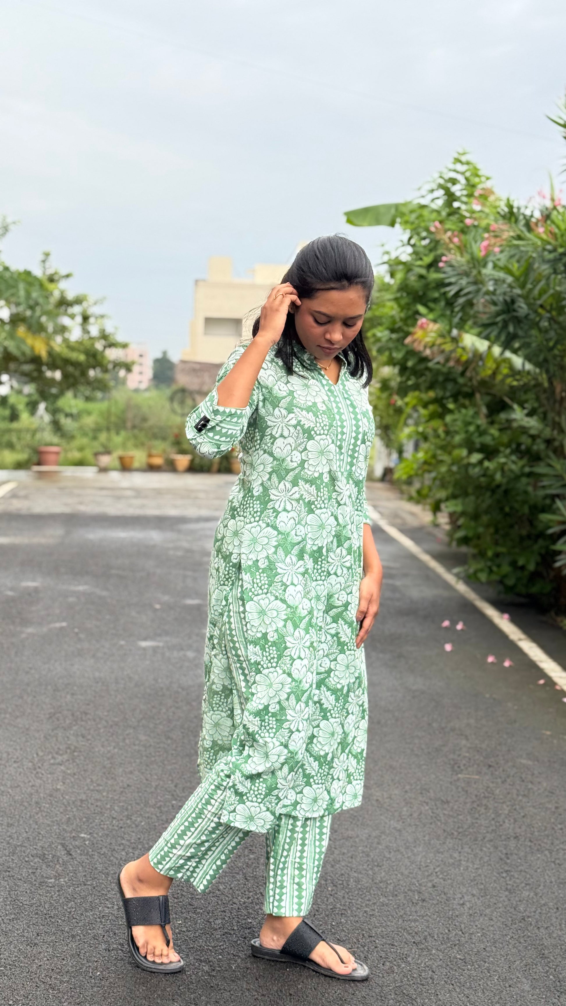 Description: A stylish 2-piece top and bottom set featuring a collared neck with patch detailing. Perfect for a polished, everyday look that blends comfort with subtle elegance.