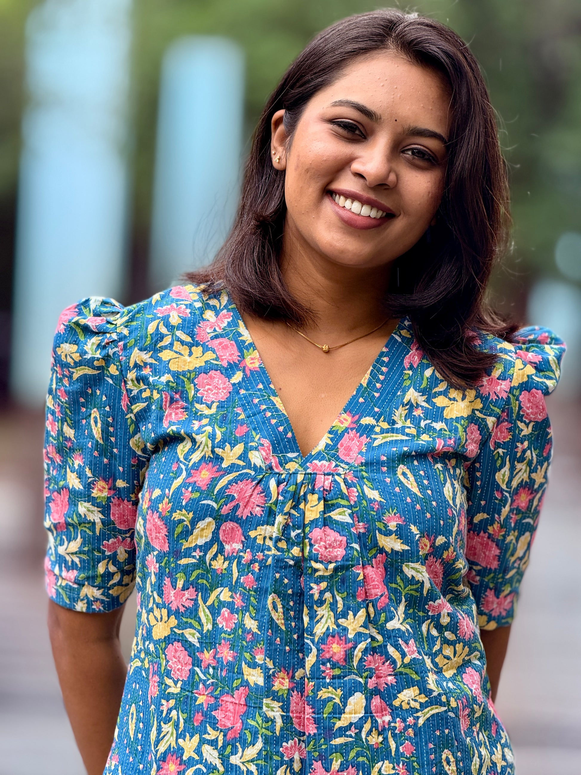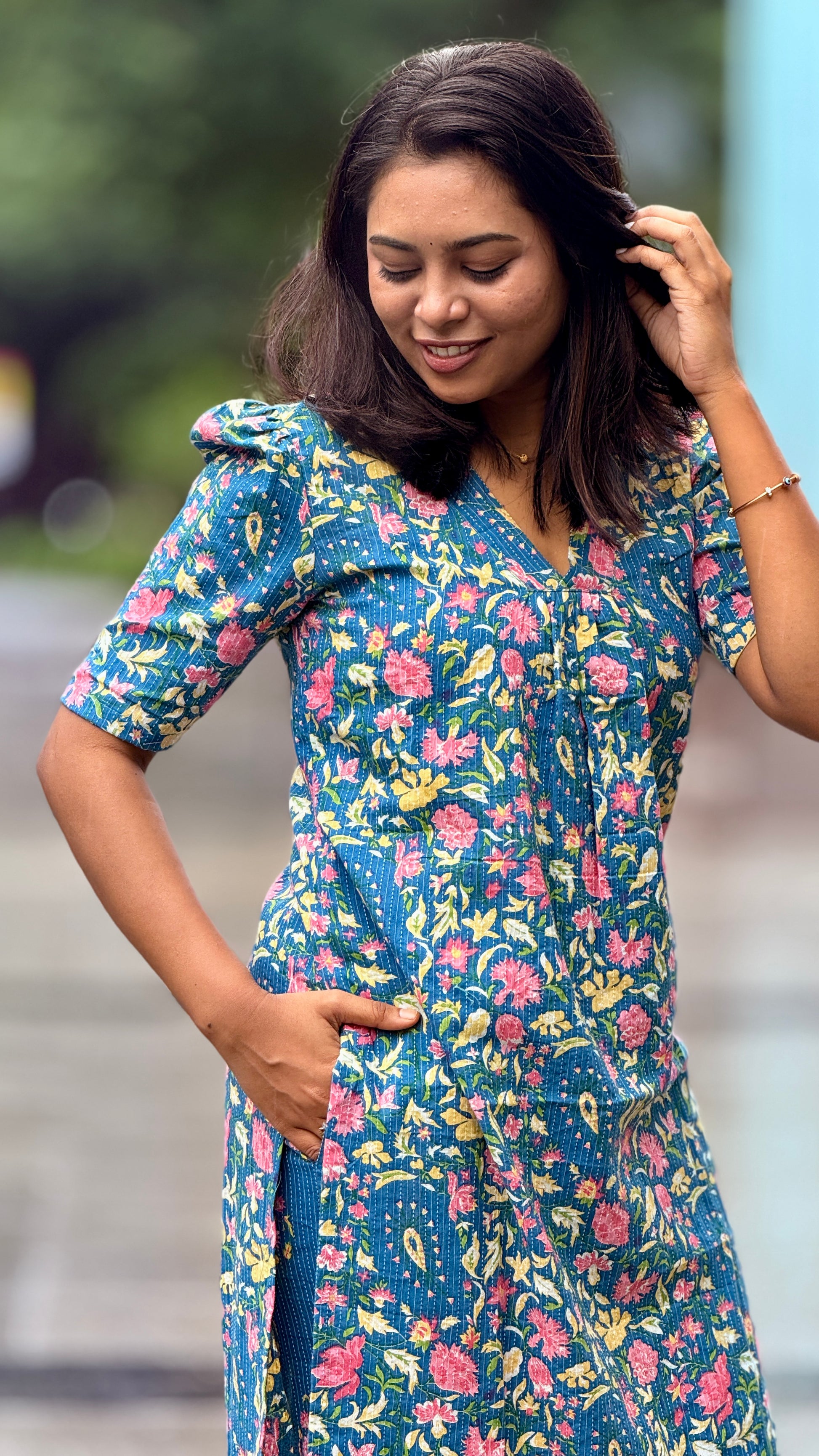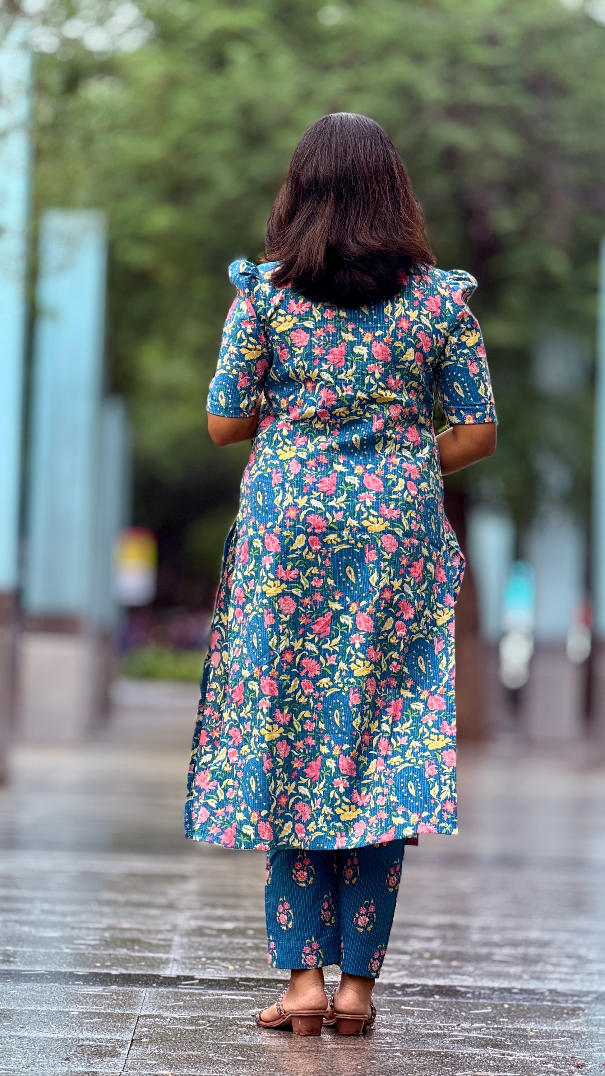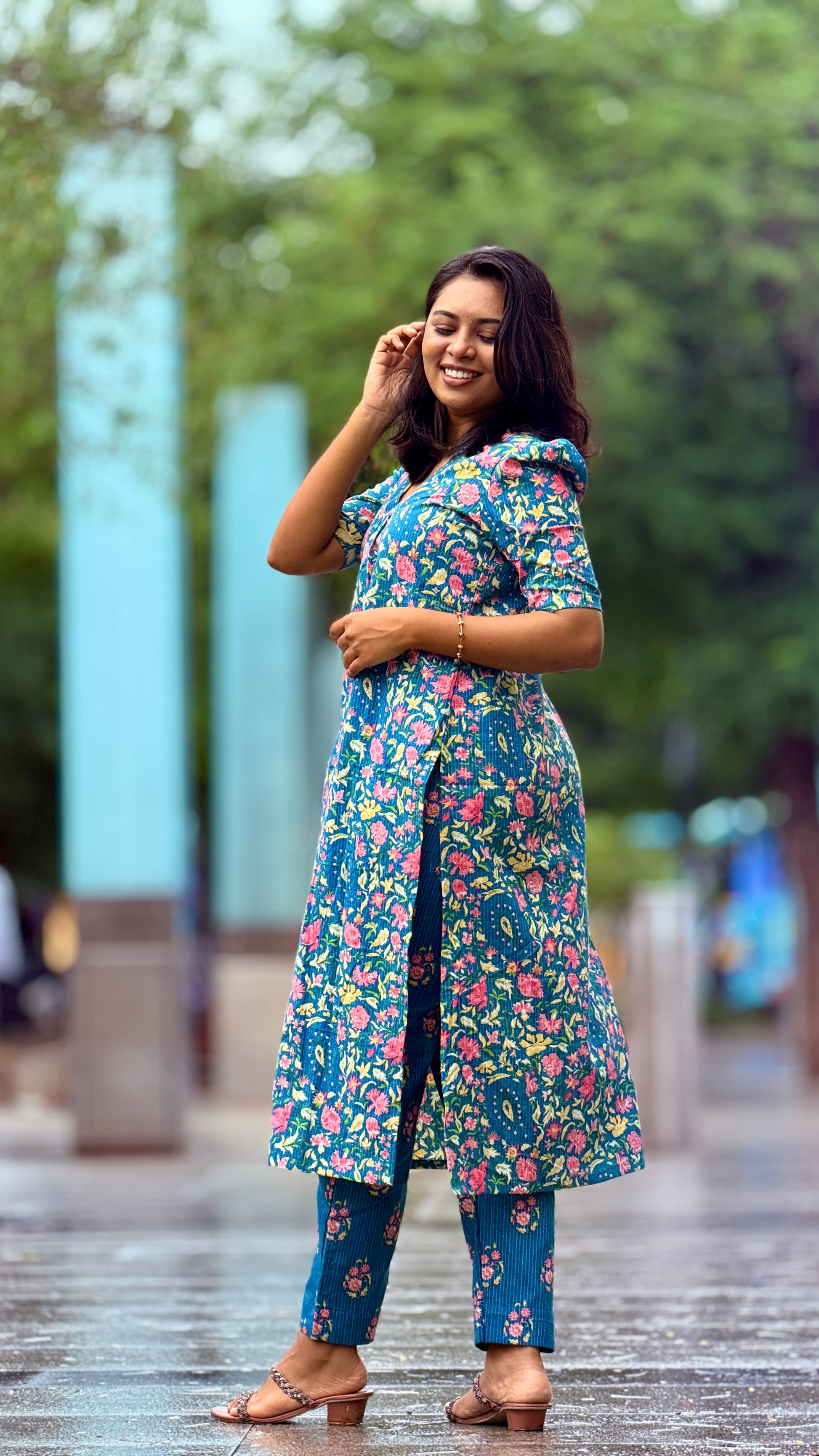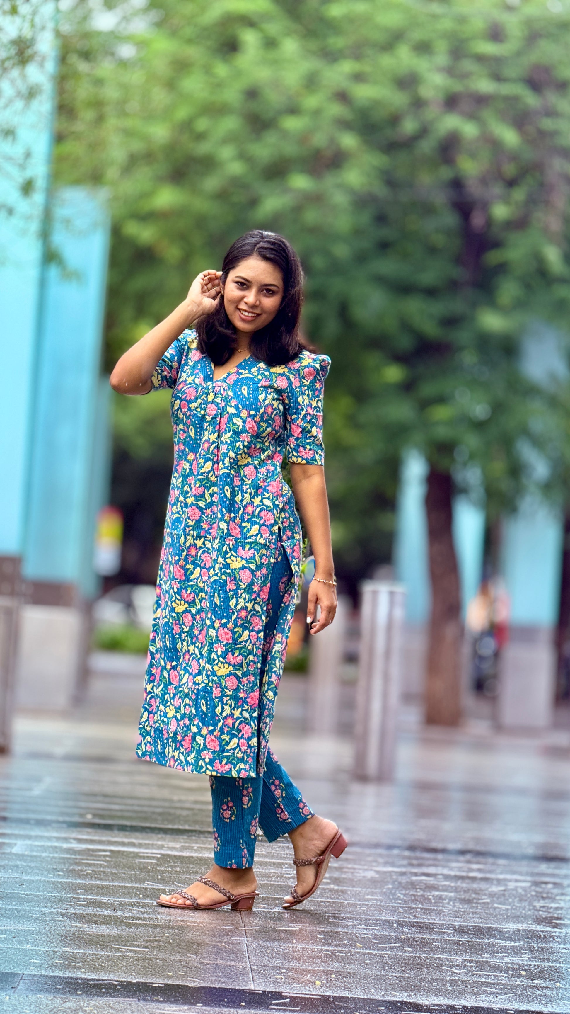 Description: A stylish 2-piece katha finish top and bottom set featuring a V-neck pleated top paired with straight-cut bottoms. Perfect for a modern, comfortable look that’s effortlessly elegant.