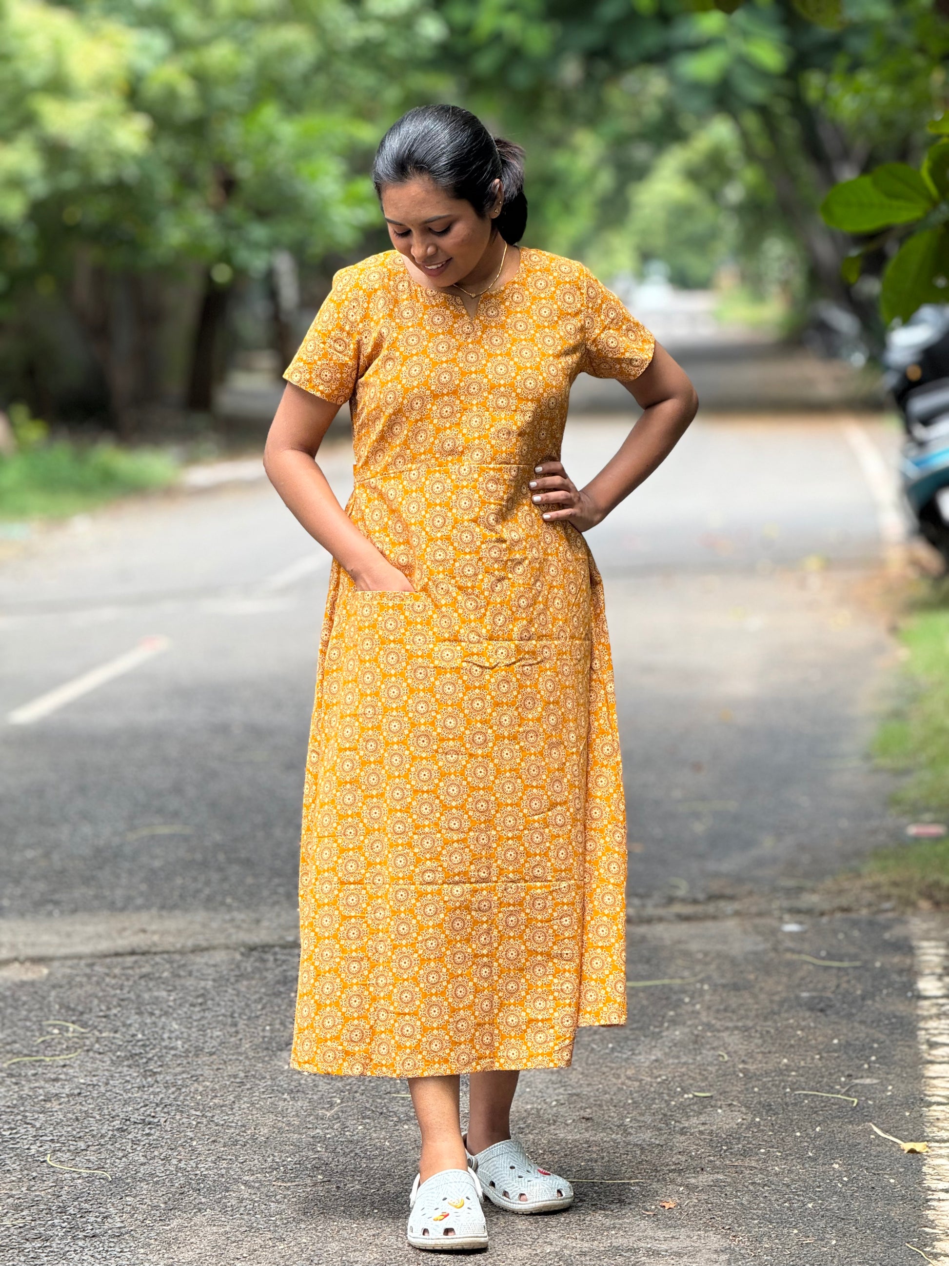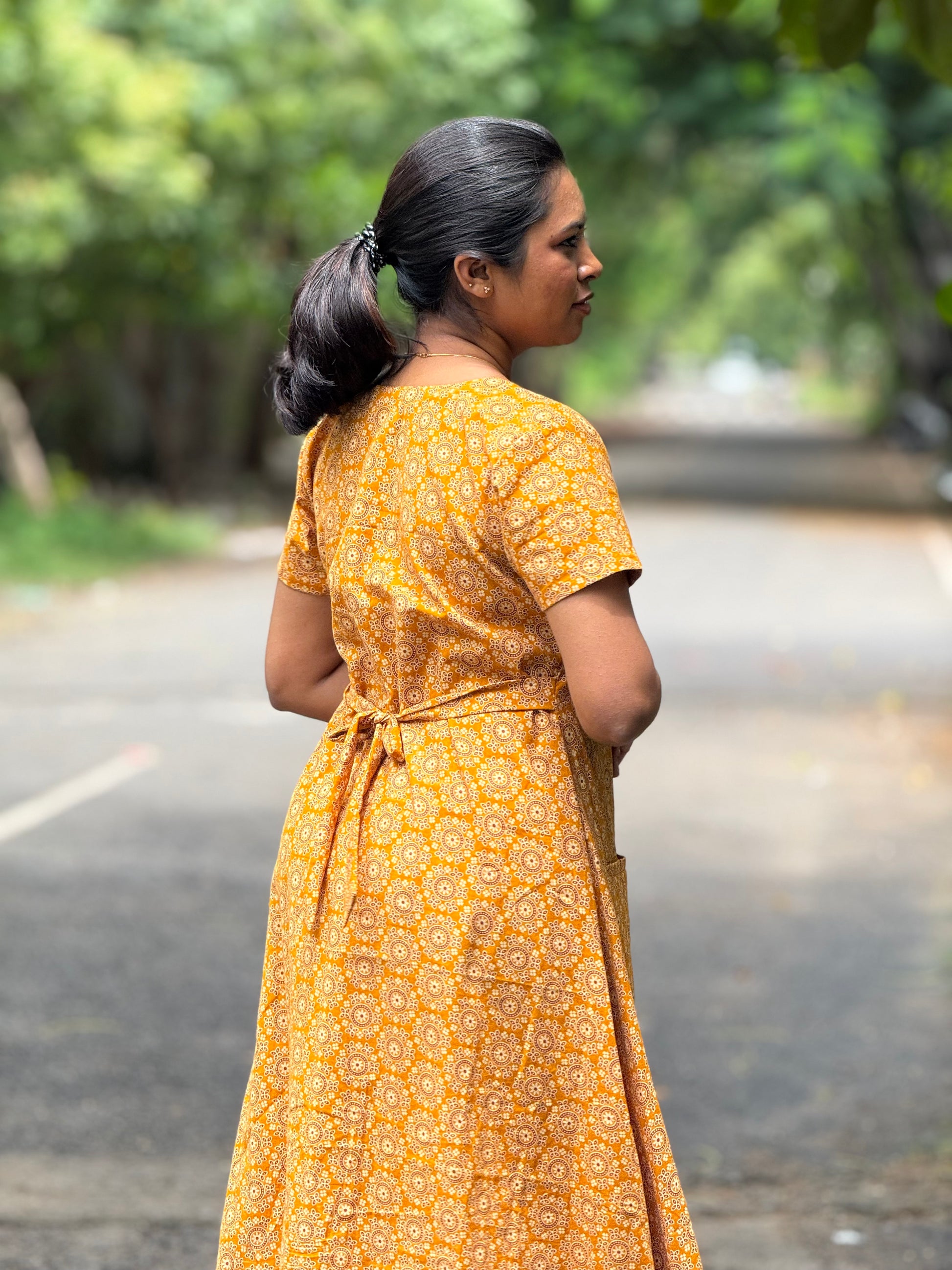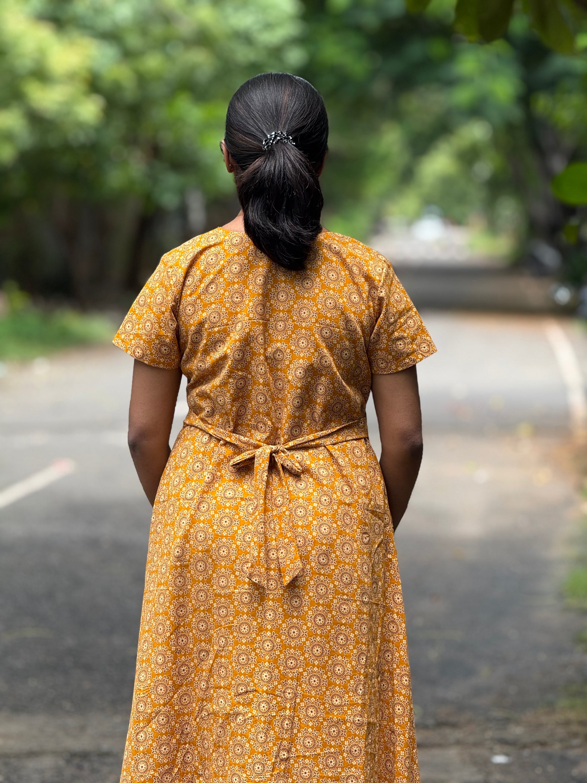 Description: Stay relaxed in this cotton maxi, designed with a back hip knot and a handy pocket for added ease. Lightweight and breathable, it’s the perfect choice for comfy everyday home wear.