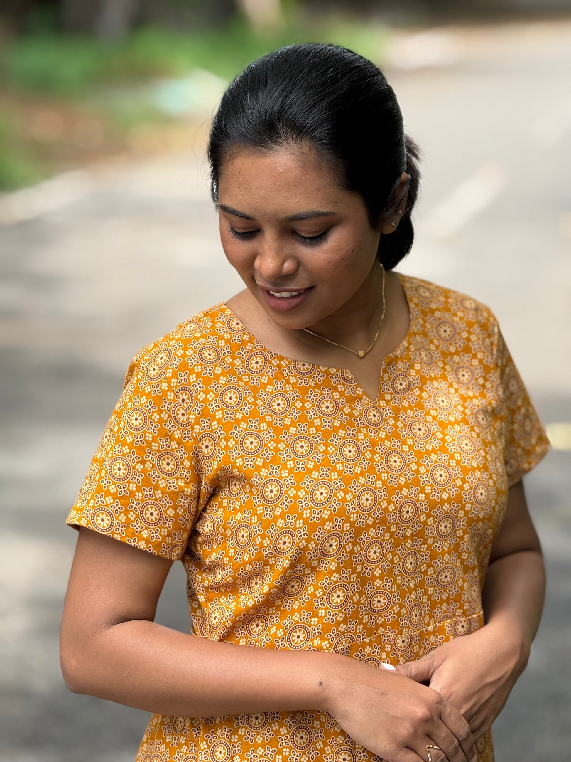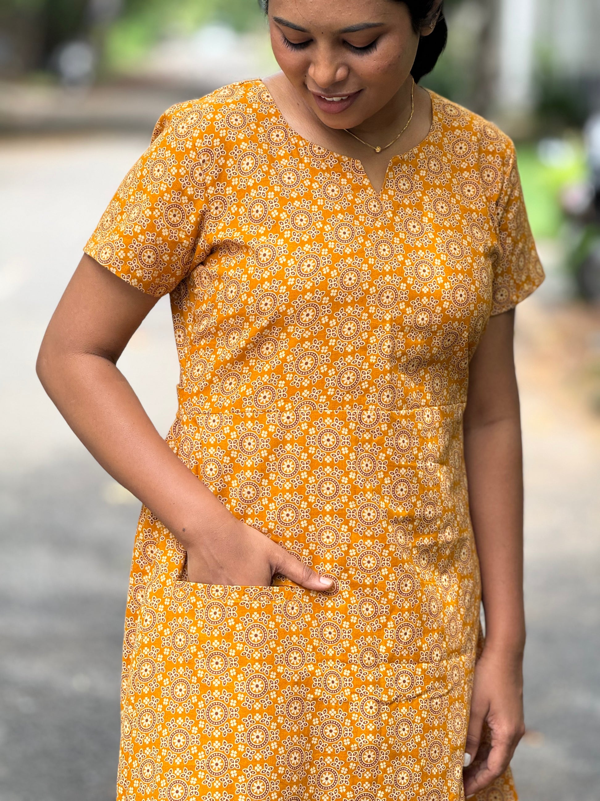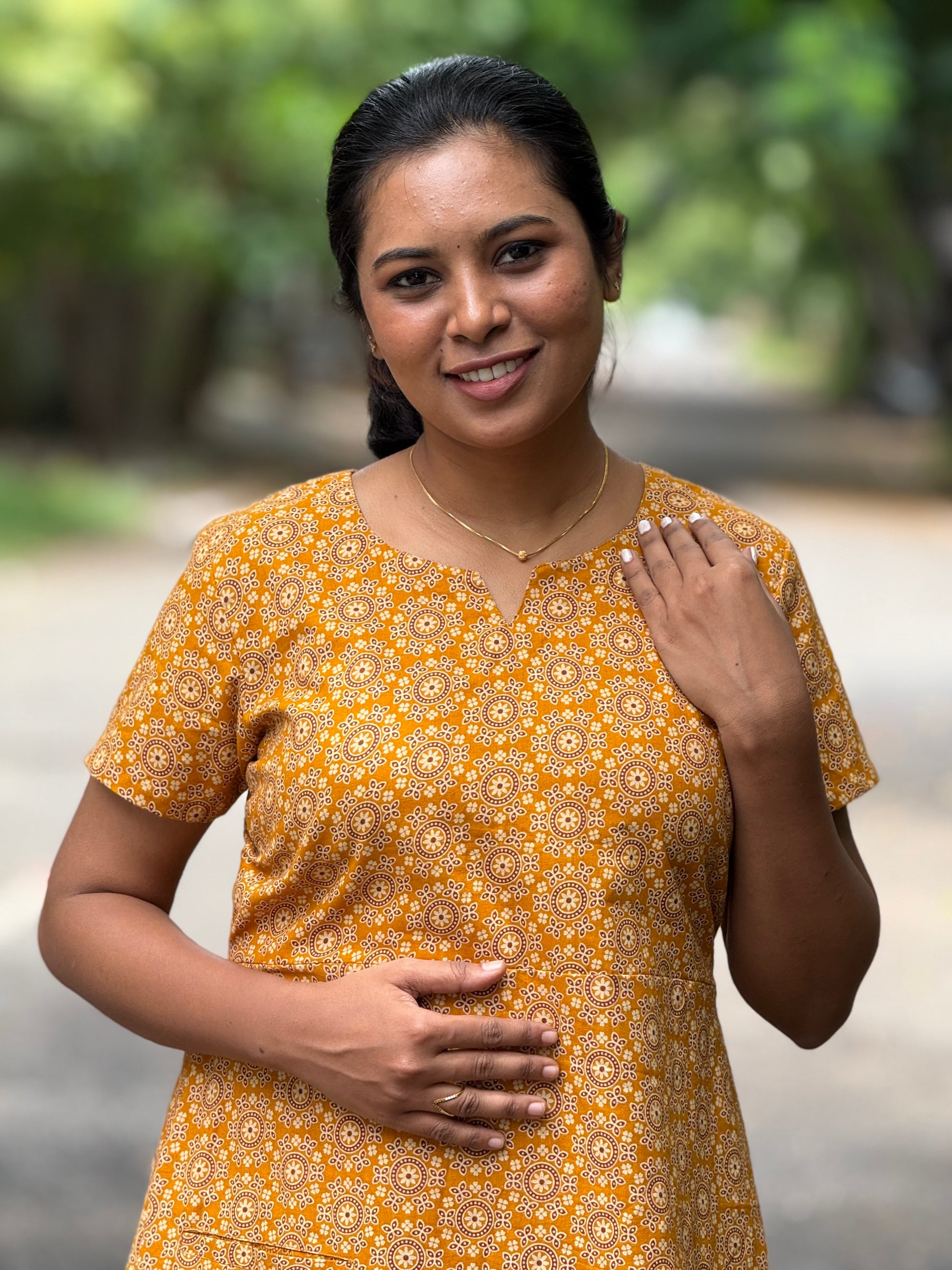 Description: Stay relaxed in this cotton maxi, designed with a back hip knot and a handy pocket for added ease. Lightweight and breathable, it’s the perfect choice for comfy everyday home wear.