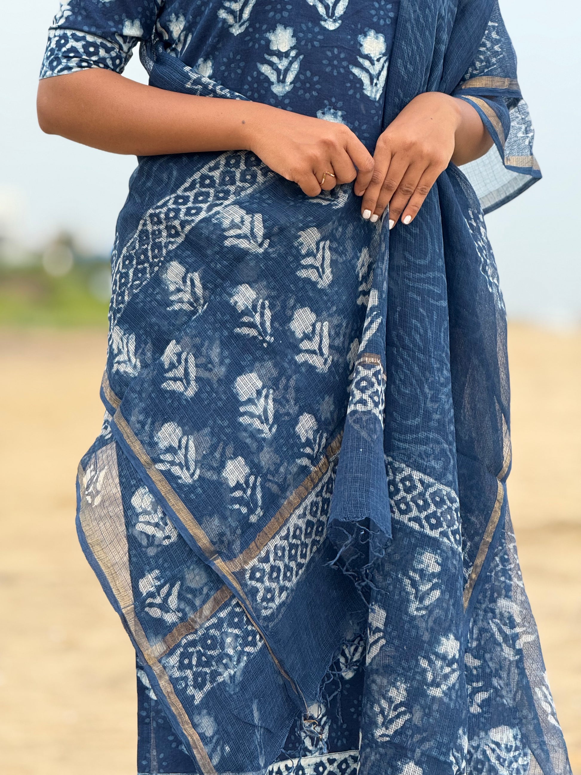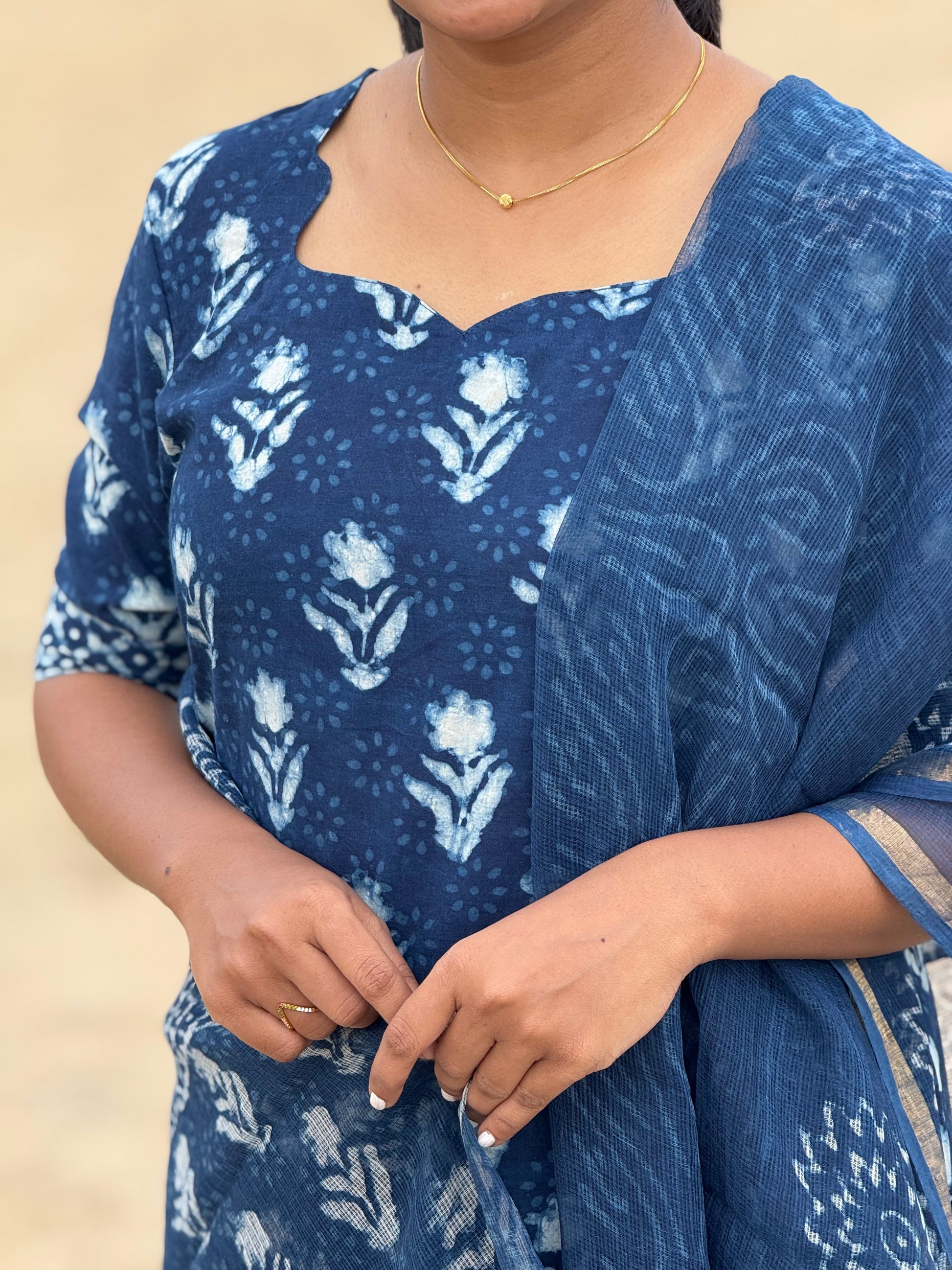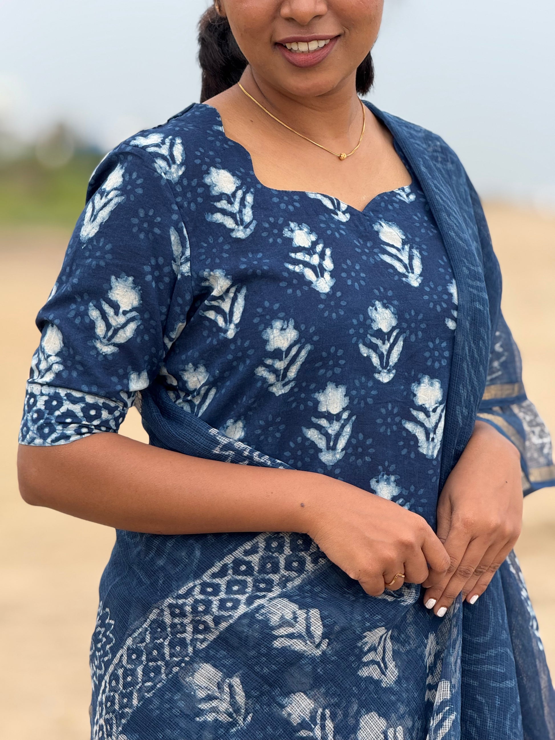 Description: A classic cotton salwar set with straight-cut pants, paired with a lightweight block-printed Kota Doriya dupatta. Finished with a graceful classy neckline, it offers the perfect mix of everyday comfort and timeless elegance.