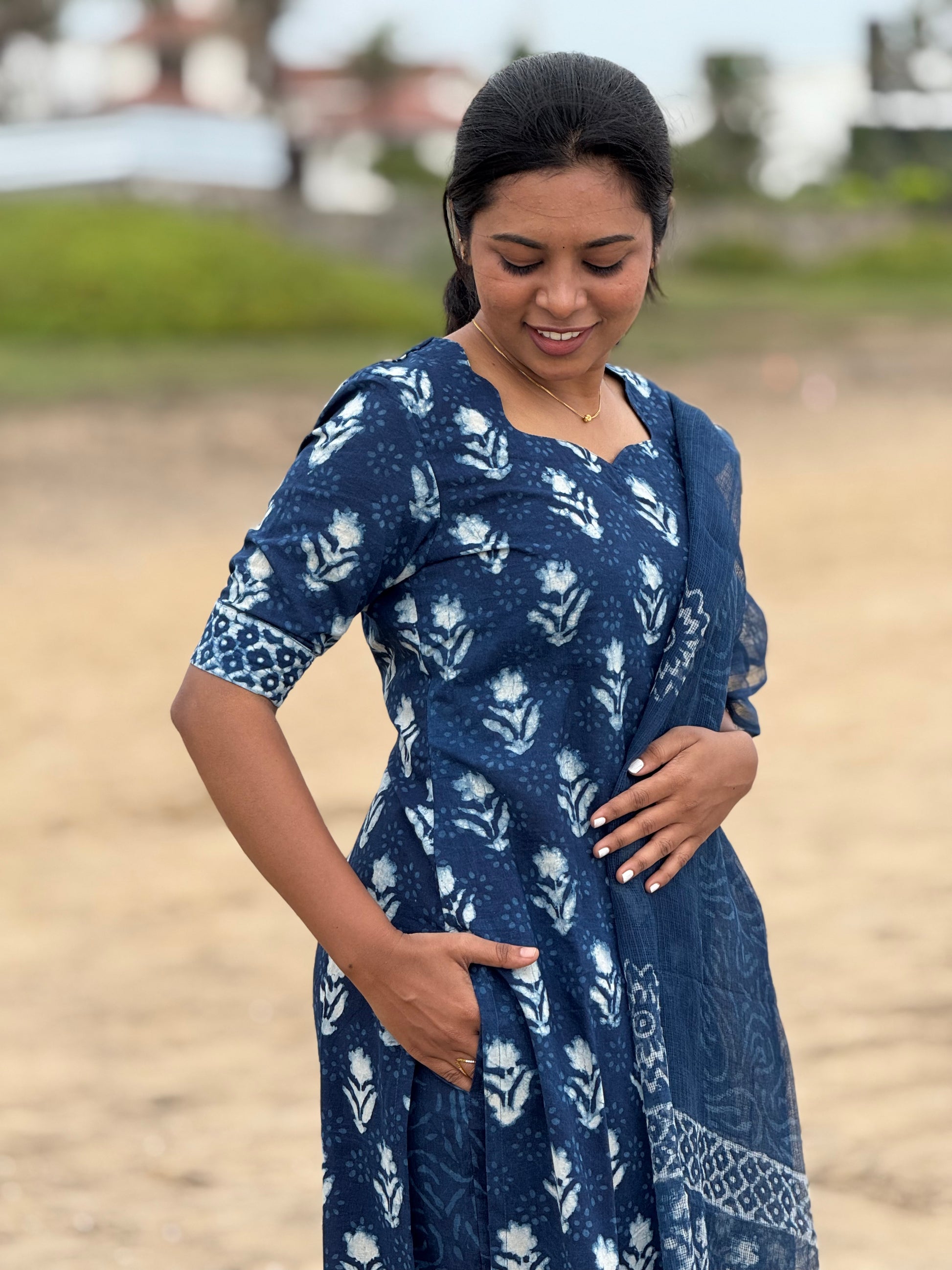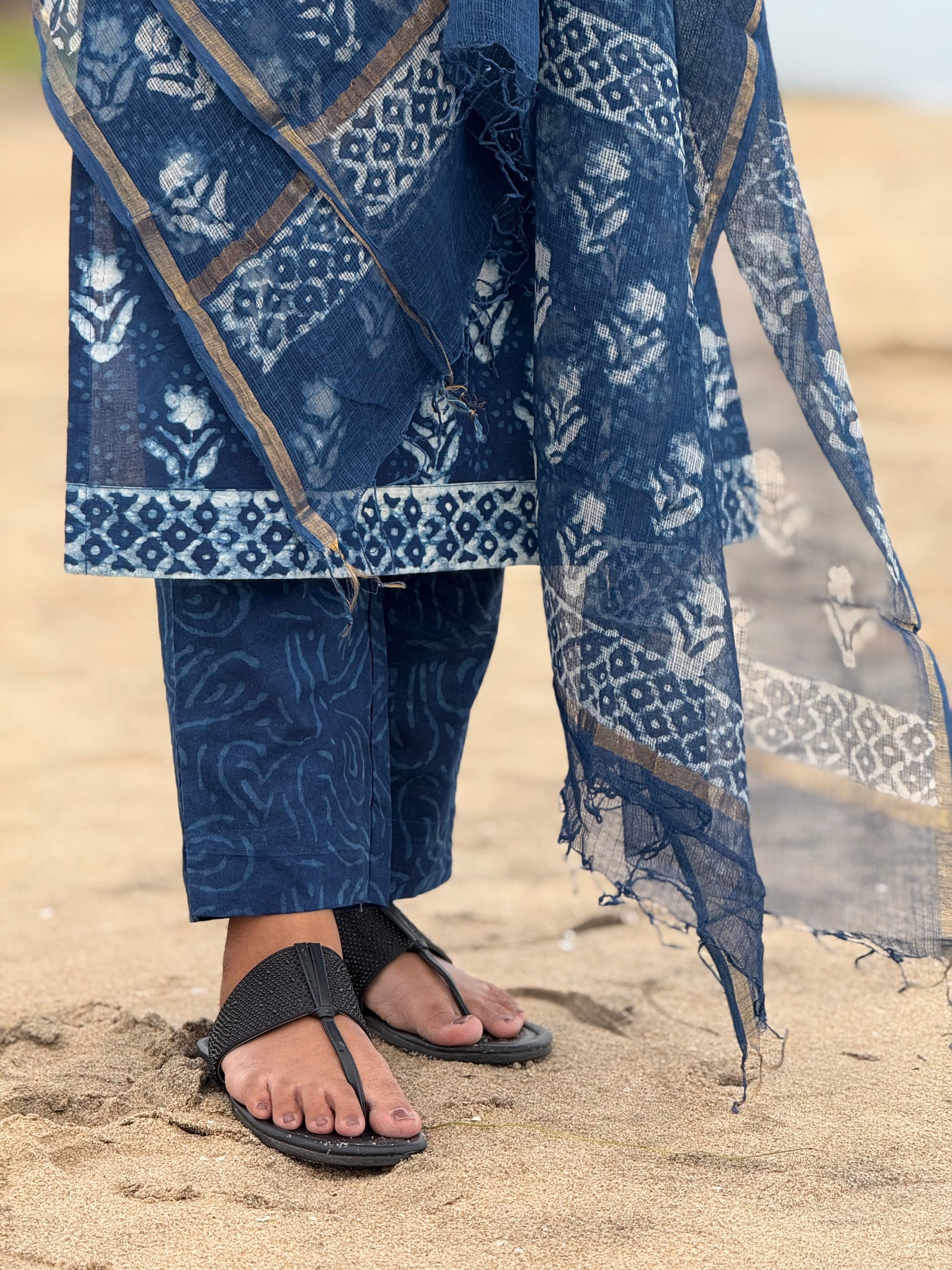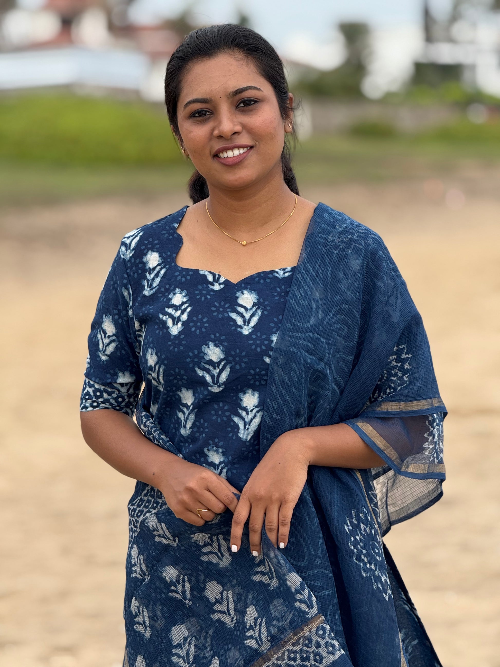 Description: A classic cotton salwar set with straight-cut pants, paired with a lightweight block-printed Kota Doriya dupatta. Finished with a graceful classy neckline, it offers the perfect mix of everyday comfort and timeless elegance.