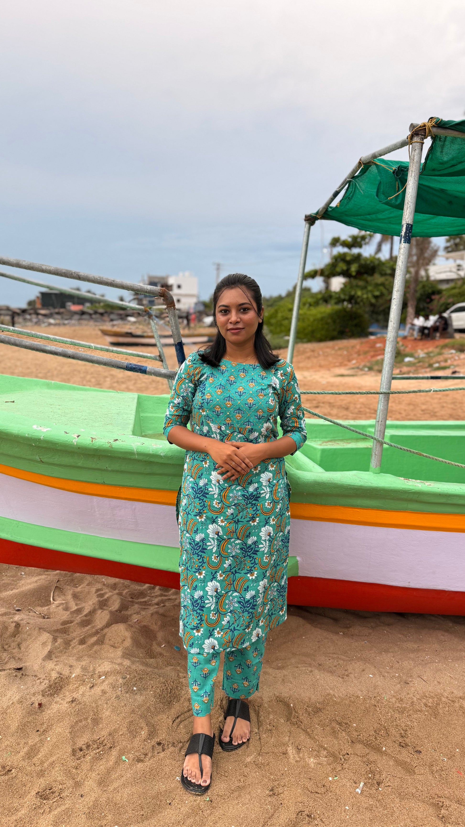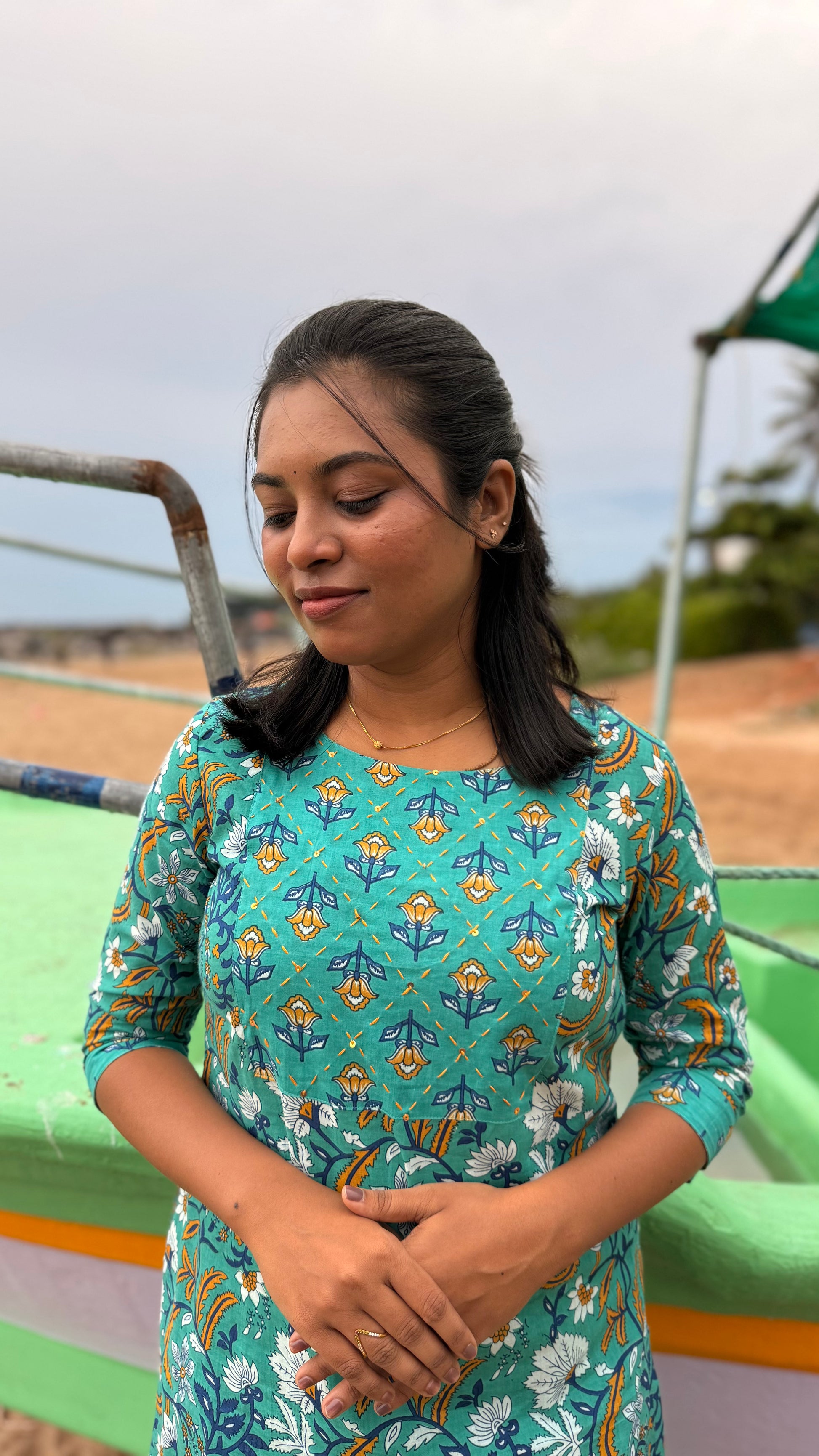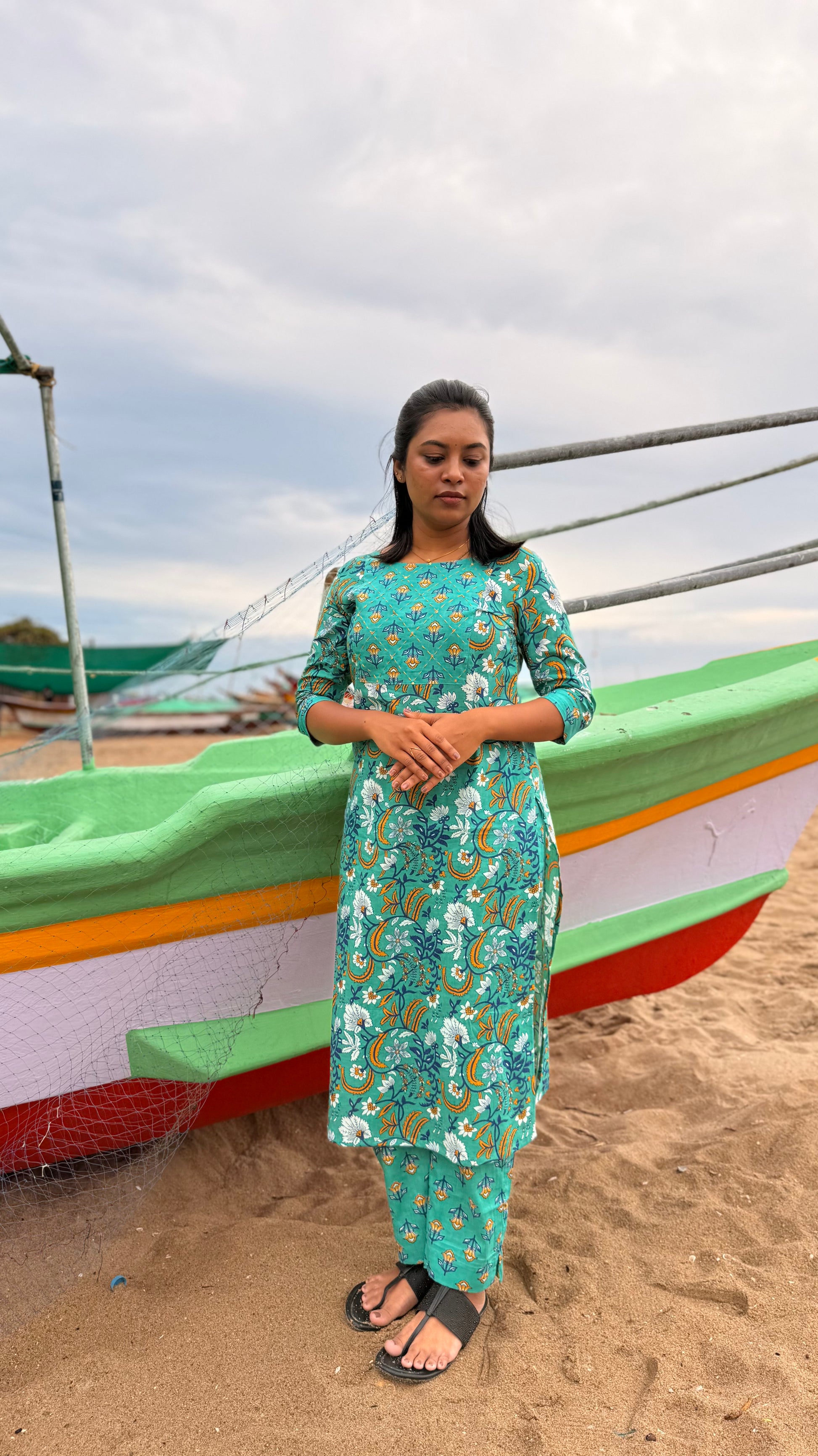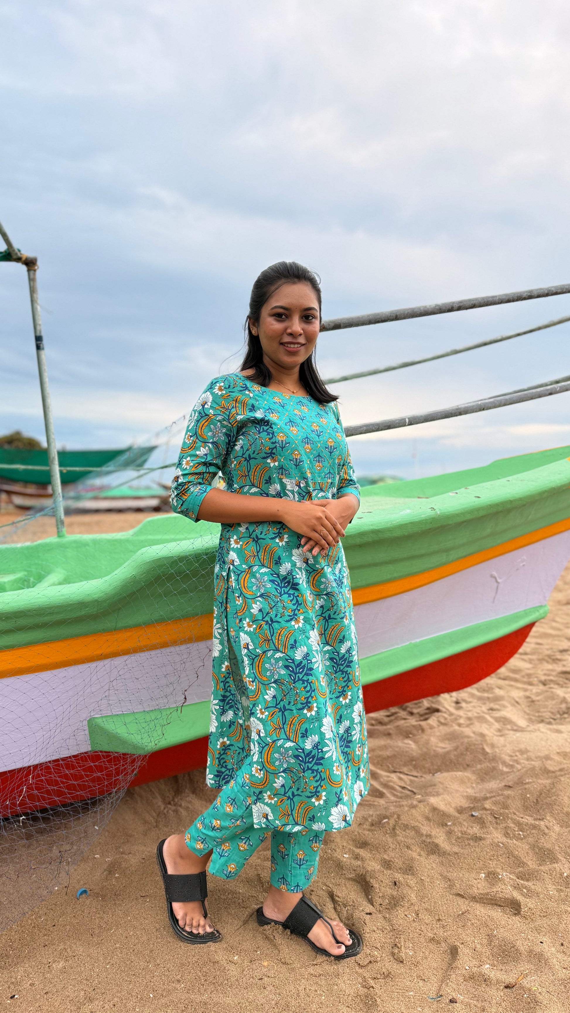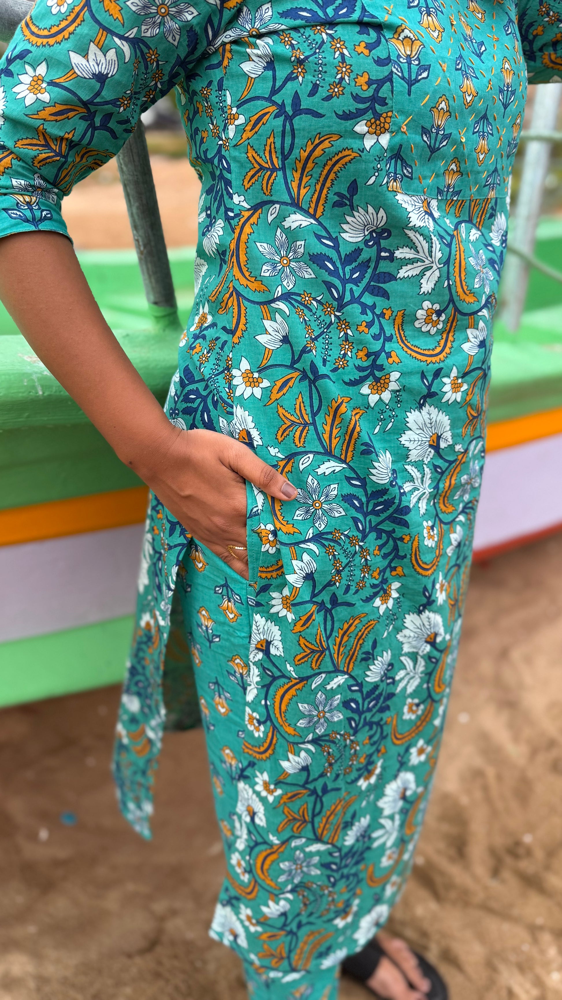Description: 2-piece top and bottom set featuring a patch neck with delicate hand embroidery and sequins. Perfect for adding a touch of elegance to your everyday or festive wardrobe.