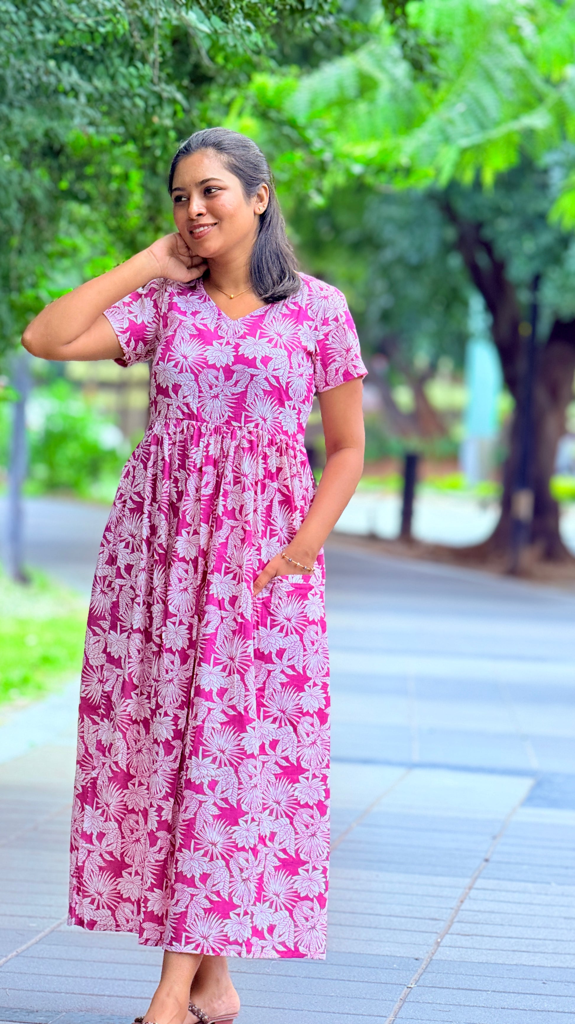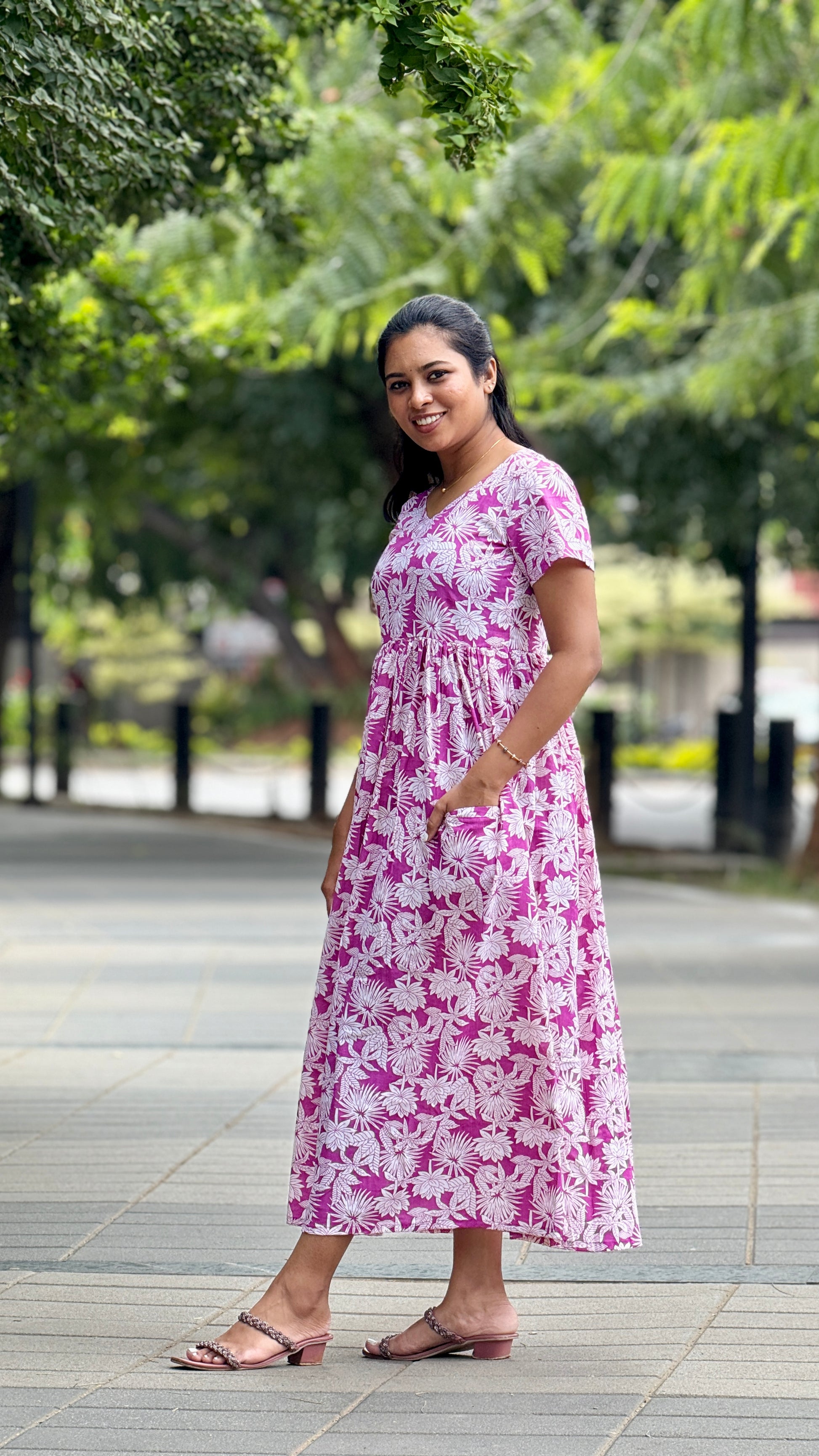 Description: Stay relaxed in this cotton maxi, designed with a handy pocket for added ease. Lightweight and breathable, it’s the perfect choice for comfy everyday home wear.