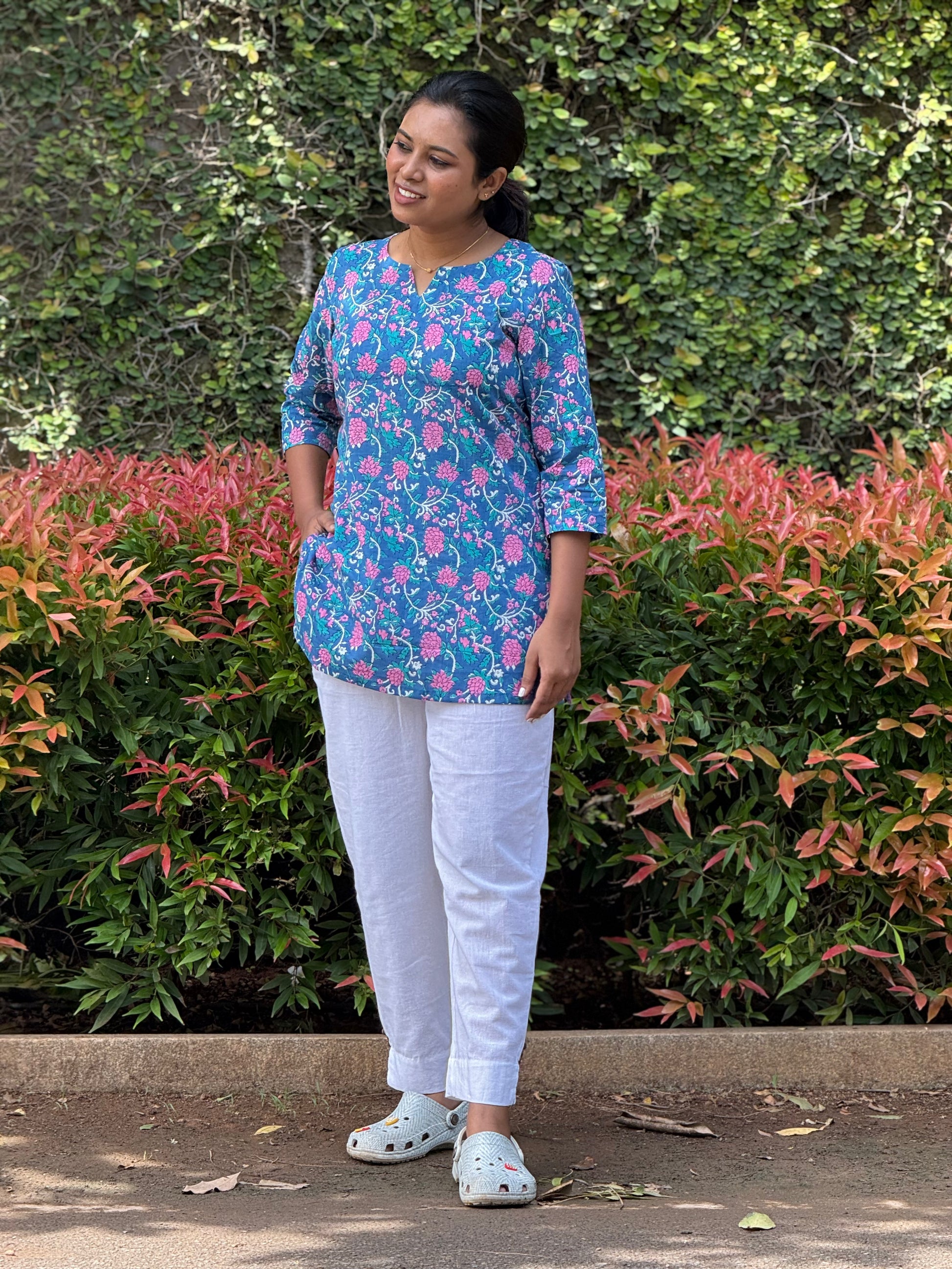 Loving crafted with natural dyes, Gentle fading or slight color bleed in early washes is part of nature's palette - a signature of true craftsmanship. Please note, the fabric may shrink slightly after the first wash, enhancing its natural character.